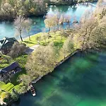Situated merely 1.3 km from Historijske gradevine Konak, the 1-bedroom Orah House, A Unique And Unforgettable Vacation On A Private Island Villa Bihac features a terrace with views of the river.